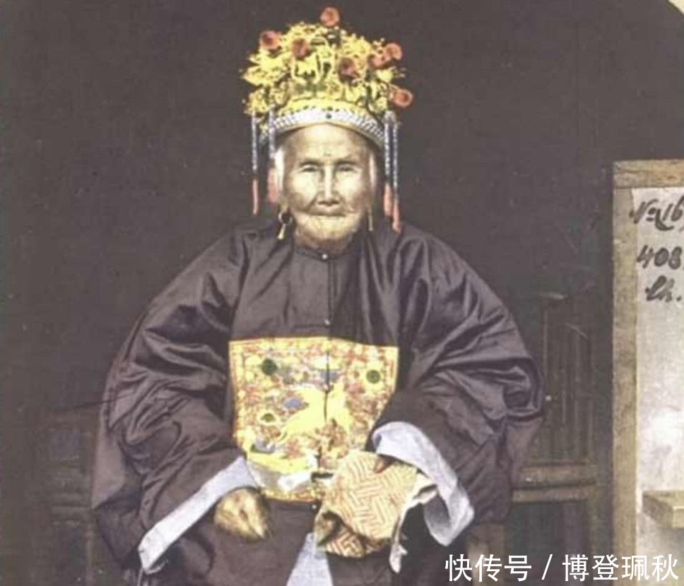 这是晚清年间一位朝廷官员家诰命夫人的老照片,古代的诰命夫人通常是指经皇帝敕封爵位的官员正室妻子,或者是其母亲。而册封的诰命夫人的等级则是根据为官者的官衔而定。诰命夫人只有朝廷册封的头衔,并无俸禄可领取。
