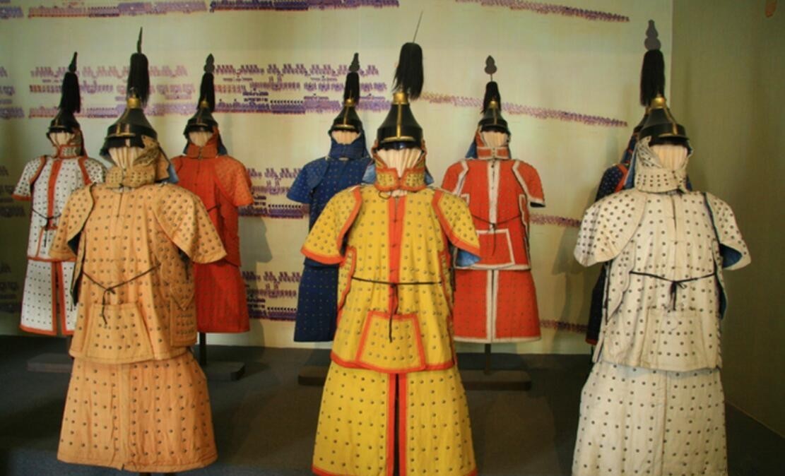 由于清朝军队以满八旗和蒙古八旗为主,军队的铠甲颜色也不一样,分为了黄色、红色、白色和蓝色,正好对应了八旗制度(正黄旗、镶黄旗、正白旗、镶白旗、正红旗、镶红旗、正蓝旗、镶蓝旗)。除了盔甲之外,盔枪上的樱穗颜色,也分为了黄、红、白、蓝。曾经有南明官员形容清军"甲胄鲜明,"由此可见,这不是空穴来风。