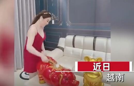 近日,越南一名女子穿着吊带裙拿锤子准备砸碎两只大猪储钱罐,当一锤下去时,现金就像瀑布一样掉下来,大部分20万和50万越南盾的面额。