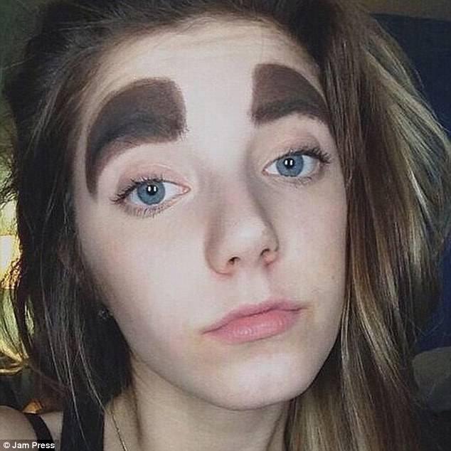 这是一组奇葩的妆容照,照片中最令人不忍直视的就是这些女士们的眉毛了,为了使自己更加的引人注目,她们一改往日正常的眉毛画法,自己来了一个创新。看到这位女士的照片你感觉如何?(新闻源自每日邮报。)