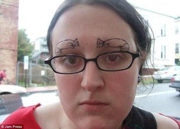 追求美的心我们都可以理解,但是这种审美是不是有点偏离正常的轨道呢?在眉毛上画出了猫的形状又是几个意思?难道她真的不觉得难看吗?