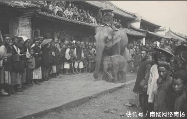 图为晚清时期的云南边境,一男子骑着大象出行,这样的场面现如今能够看到,但却只能在杂戏团或者东南亚小国家。而在那时,这样的场面人们都见所未见,所以纷纷走出来围观这一不可思议的景象。