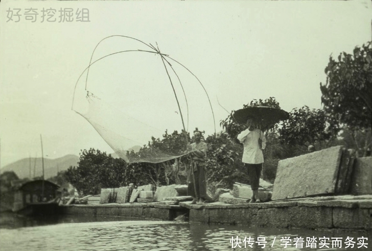 撒网的渔民。