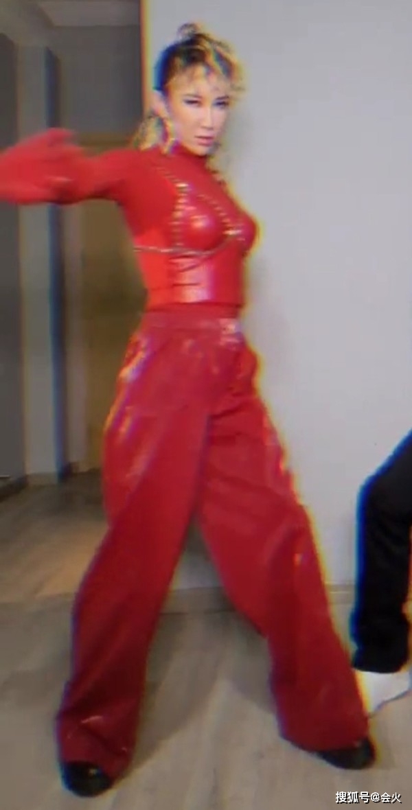 除了亮眼的舞姿以外,视频中的李玟发型十分的“朋克风”,其身穿红色紧身上衣以及宽松的阔腿裤,钻石内衣外穿尽显性感身材。