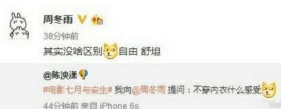 周冬雨有颜值又有演技,唯一的缺点就是身材有点闹心了。曾有一位网友问周冬雨不穿内衣什么感受,可能很多女明星看到这样的问题都会感觉受到了侮辱吧,想不到周冬雨大大方方的回复了她。