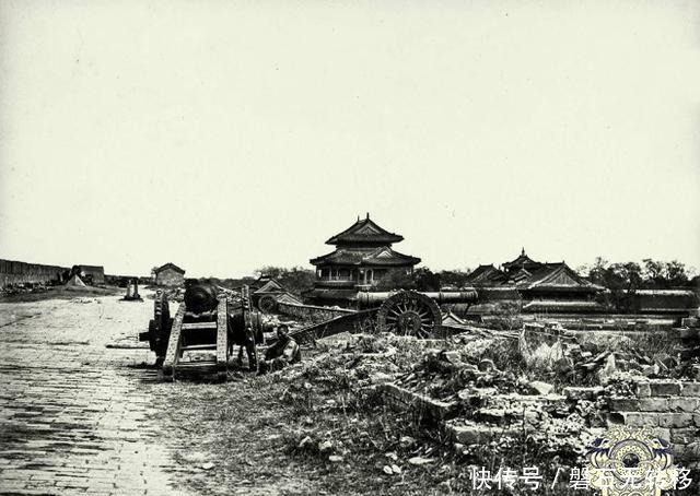 照片为被占领的北京城墙顶部,清军丢弃的大炮。英国摄影师菲利斯·比托1860年10月13日拍摄。