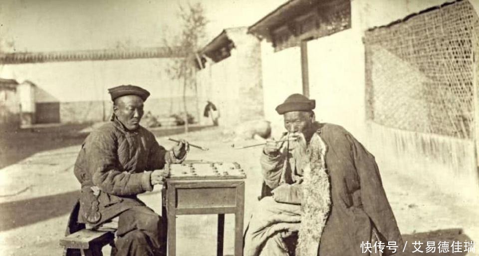 两名老大爷在院子里面抽烟下象棋,环境比较简陋。