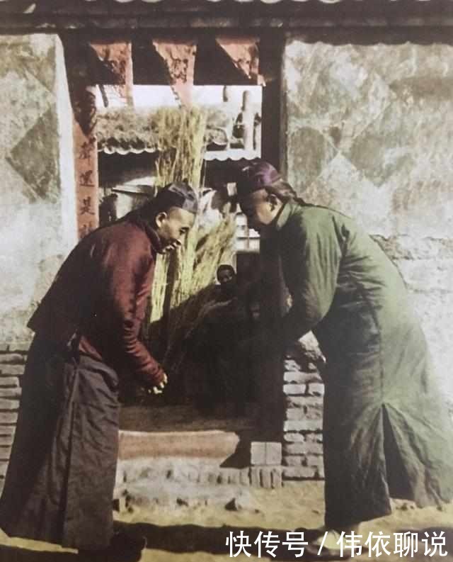 晚清两位读书人碰面,很有礼仪,弯腰作揖行礼。作揖不需要触碰手部,它相比于外国人的握手有更卫生的特点。现代的鞠躬就是从作揖拱手礼演化来的,不过少了礼仪之邦的味道。