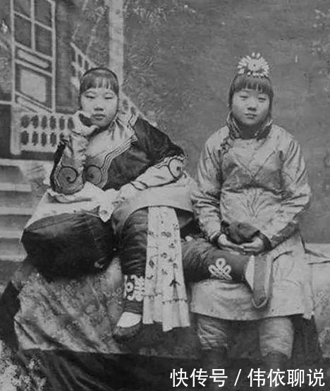 清代青楼女子在琴棋书画、诗词歌赋等才艺要有研究,就是为了不断满足"恩客"的精神需求。图为两位青楼女子的合影,一位用手搭着下巴,随意把腿盘坐着,一只脚不小心碰到了姐妹,不拘小节。另一位害羞的坐在床上,表情很可爱。