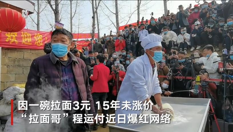 2 月份," 拉面哥 " 程运付因 " 一碗拉面三块钱,卖了 15 年不涨价 " 的视频登上热搜,随后爆红网络。