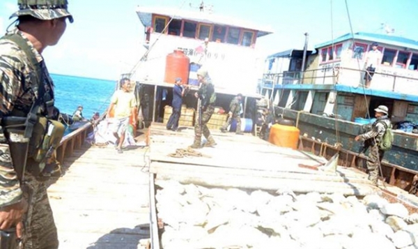 2012年4月11日,菲律宾外交部出示一组照片显示,10日上午菲律宾海军在黄岩岛海域持枪登上中国渔船“琼海03026” 资料图