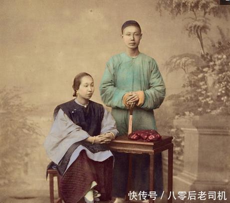 这是一名富贵人家的晚清女子,女子眉目端庄有气质,旁边站着的男子是她的丈夫。