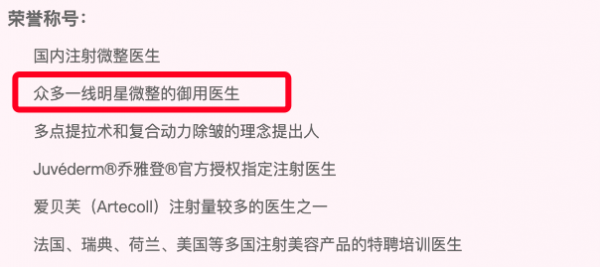 通过搜索赵琼的履历,不难发现她也是整形界的大咖人物,赵琼更是把自己标榜为“众多一线明星微整的御用医生”,可见赵琼医生的能力不容小觑。