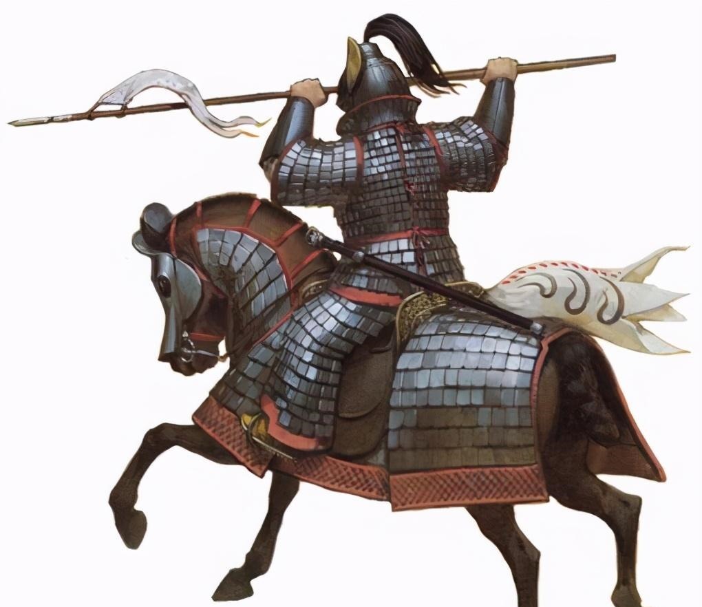 而赵子龙作为将领,前往营救糜夫人和阿斗之时,必然穿着全套盔甲。在东汉时期并没有严格意义上的重骑兵存在,而汉代的札甲一般由超过600片的铁片穿缀而成,重量超过十公斤,我们目前出土的汉代铁甲中,最重的一领铁甲是安徽阜阳发掘出的一套铁甲,全身由三千零八片铁甲组成,全重为二十多公斤。