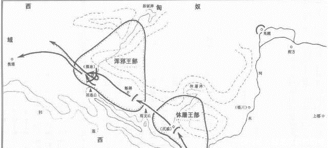 第二次河西战争出征路线:北地出发,从灵州渡黄河,北越贺兰山,越过腾格里沙漠和巴丹吉林沙漠,绕道居延海(今内蒙古西北),由北向南沿弱水进发,再过小月氏(今甘肃酒泉),再从西北转向东南,深入匈奴两千余里的腹地,再祁连山与合黎山之间的弱水上游地区向匈奴的浑邪王、休屠王发起猛攻。这进军路线你明白了吗?笔者看着着实觉得有些复杂,不过效果却绝佳,打毫无防备的匈奴人一个措手不及,直接蒙圈了--这里怎么会窜出一支汉军?而且,霍去病全军才折算三千余人,之后西汉朝廷在河西地区先后设置武威、酒泉、张掖、敦煌四郡。