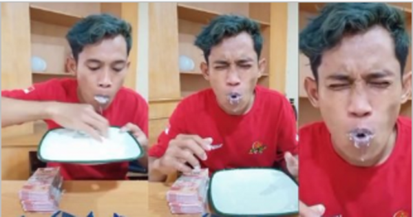 日前印度尼西亚网红昂贡(anggun)收到一个疯狂挑战,只要他吞食掉4包食盐,就能获得3000万印度尼西亚盾(约1.35万元),没想到,这名网红真的直播吃盐。许多网友骂道:“为钱不要命了吗?”