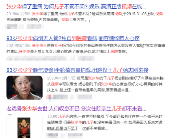 针对网传的张少华儿子不孝等爆料,张少华曾发微博回应过,透露她住院期间都是儿子在忙前忙后,网上的视频是有人颠倒是非诽谤她儿子,称儿子是工作努力孝顺父母的好人,还希望大家不要再伤害他的家人了。