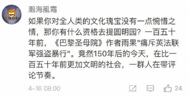 圆明园的大火烧了3天之久,导致300多太监宫女葬身火海,20多名太监力战不敌以身殉职,总管圆明园的汉族大臣文丰投湖自尽。在那场大火中,无数中国的国宝悉数遭到了焚毁,其中以古籍的损失最为严重,有上万卷珍贵图书灰飞烟灭。英法联军干下了人类历史上最为罪恶滔天的罪行之一。