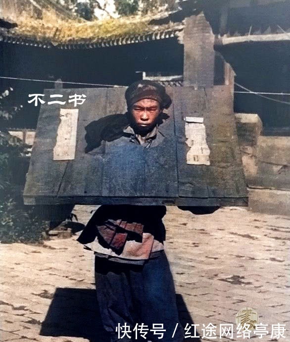 照片拍摄于1900年,在八国联军攻占北京后,被逮捕的义和团成员,他头戴刑枷,此后大部分的义和团成员将被处死,并且是由清军亲自执行。