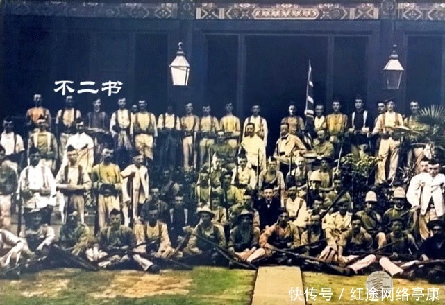 照片拍摄于1900年,八国联军侵华期间,攻入北京城的英军部队士兵在英国大使馆内留下的摄影。
