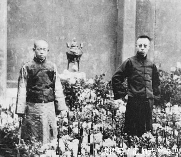 这是在养心殿前的花园里,溥仪和太监"同框"。这也成为唯一一张皇上与太监的照片。