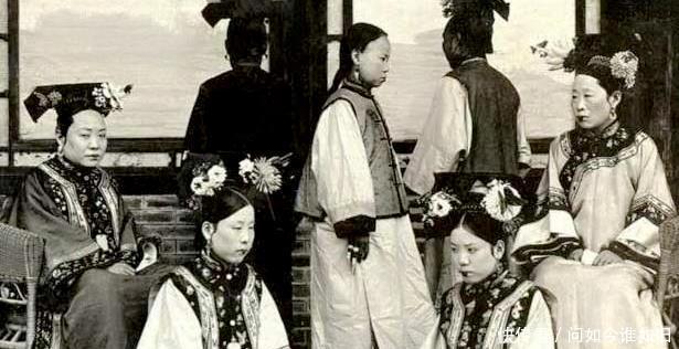 晚清贵族老照片:晚清时中国最后一个封建王朝,晚清官员的三妻四妾聚集在后院闲聊。
