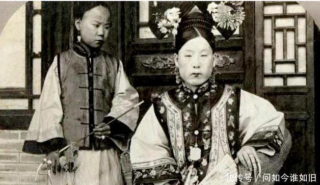 晚清贵族老照片:一个晚清大官的妻子,喜欢吸旱烟。