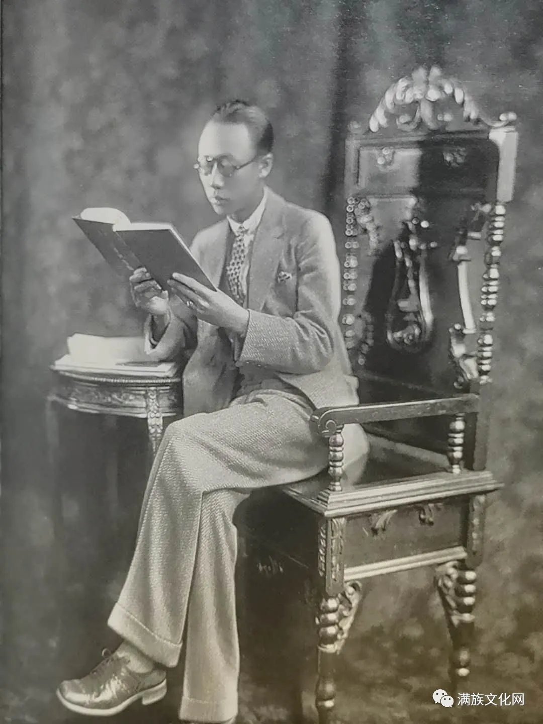 这幅拍摄于1925年5月,照片上的主人公是逊位大清皇帝溥仪在天津张园溥仪会客厅的一幅摆拍皇帝看书照。