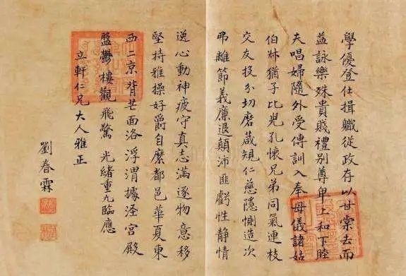 刘春霖能够得到状元的荣誉,除了诗文俱佳外,还因为他的书法极好。刘春霖的小楷笔力清秀刚劲,堪称一绝。到了当代,书法家仍然有"大楷学颜、小楷学刘"的说法。这里的"颜",指的是颜真卿,"刘"则是指刘春霖。