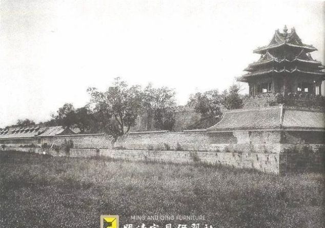 东北角楼,墙根下的连房是给兵卫们住的,八国联军入侵,护城河里都没水了