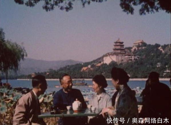 这一张照片是溥杰夫妇和溥仪夫妇游览颐和园时的场景。一家人谈天说地,品茗看景,十分开心。