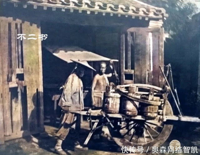欢迎来到不二书旧影时光,今天为各位读者朋友们分享的这一篇组图,是来自于清末时期的上色老照片。通过这一组老照片,我们可以来回顾一下这段历史中留存下来的影像。这张照片拍摄于1861年,在北京夏日街头的运水工,他们刚刚从水井中装完水,用小型水车将水运送至居民家中。