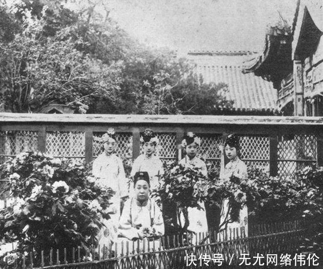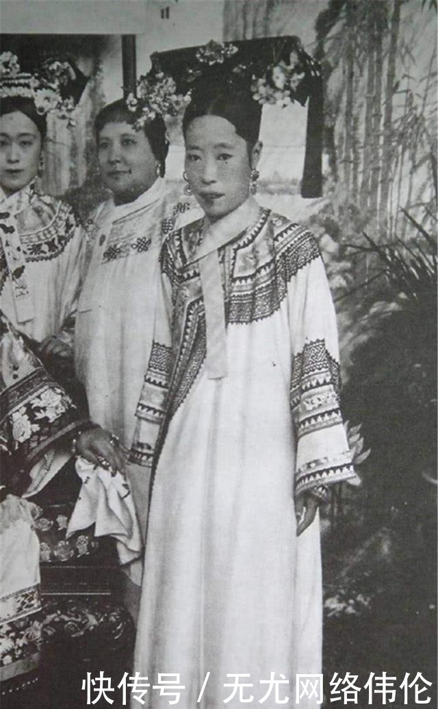 清末帝溥仪的胞弟溥杰,他一生有两位妻子。第一位妻子是他他拉·怡莹,汉化名字是唐石霞,又名唐怡莹,她是珍妃和瑾妃的侄女,因为瑾妃的疼爱,自幼就在宫中长大,和溥仪经常一起玩耍,很有青梅竹马的味道,她是满清少有的美人胚子。图为端康太妃(前坐者)和唐怡莹(左一)、婉容(左三)、文绣(左二)的合影,唐怡莹比婉容美多了。
