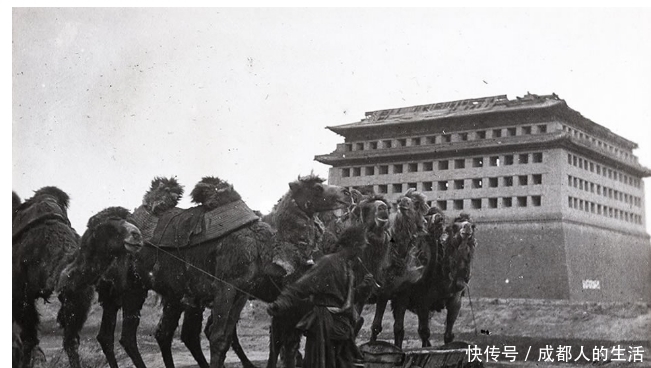 内城角楼附近,骆驼在饮水。