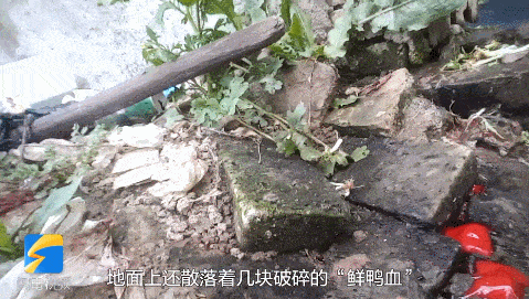 记者蹲守隐秘小屋第3天 上午8点,终于得以进入这座隐秘的小屋。只见门口十分脏乱,地上堆放着多个塑料箱、水桶和泡沫箱,还有一堆满是血迹的塑料袋和几个盐袋子,地面上还散落着几块破碎的“鲜鸭血”。