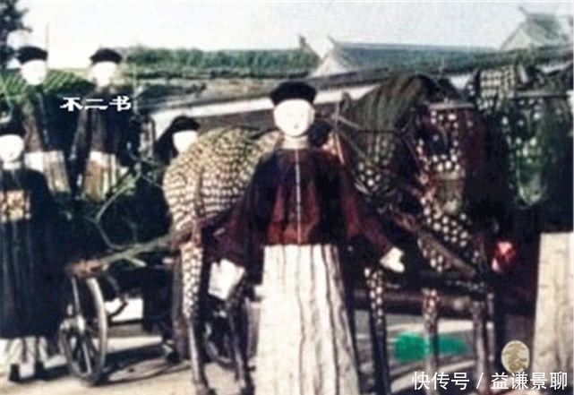 照片拍摄于1909年11月16日,慈禧太后葬礼中的纸扎人,穿着宫人的服装,一比一的人模大小, 看起来非常诡异。