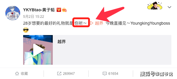 并且,黄子韬最近发出的新歌,他发文表示:「28岁想要的最好的礼物就是,你听」。本来儒爷以为新歌就叫「你听」,但后来发现黄子韬的新歌并不叫「你听」,而是「跨界」。如今看来,这个所谓的「你听」或许并不是指粉丝。因为,如果是粉丝肯定会说你们听,但是黄子韬却直接用「你」,因此很有可能,黄子韬是在借新歌表白张允恩。