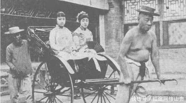 照片中的是晚清时期出门坐轿车的大户人家小姐,照片中拿着扇子妆容华贵的是小姐,左边的则是她的丫鬟,这样看起来,丫鬟比小姐还要漂亮。丫鬟浓眉大眼,脸型也非常的好,气质也不错,小姐却十分的丑陋。