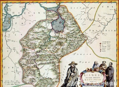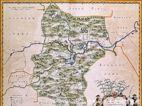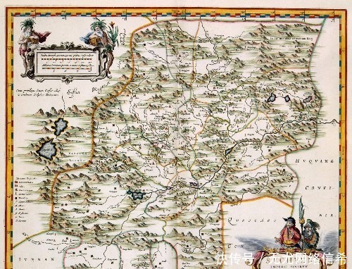 当时的四川省辖区比较今日还是颇有差距的。若通过图中多条河流汇集长江一处也不难看出此为四川。不过,这位传教士对中国的地理倒是钻研颇深,这一点可从图中最左侧类似葫芦的地方看出,此处葫芦形即是黄河的源头扎陵湖和鄂陵湖,而这两个湖泊在当时是属于羁縻之地乌斯藏都指挥使司的辖区(今西藏)。