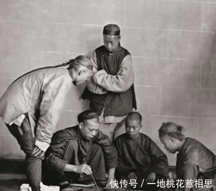 一群人聚在一起赌博,地方摆着大把的钱币。
