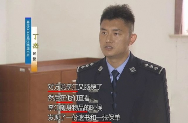 之后一个医护人员做了证明,对方用李江的手机和秦女士聊天说,在李江的随身物品中发现了一份遗书和一张保单,保单上的受益人就是秦女士,对方说等着李江咽气,让秦女士好好休息等。
