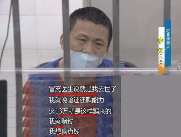 秦女士发现可能遭遇诈骗,于是报警,警方在调查之后发现,那家医院根本就没有李江这个病患,李江也没有去世,所有人都是他在扮演欺骗秦女士,他说自己赌钱,为了筹赌资,虚构了悲惨身世,利用虚假保单“假死亡”骗秦女士。