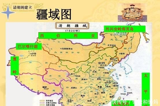 这就很有意思了,这张图中国的疆域显然比课本要大,主要是北边,一直扩大到了贝加尔湖一带。