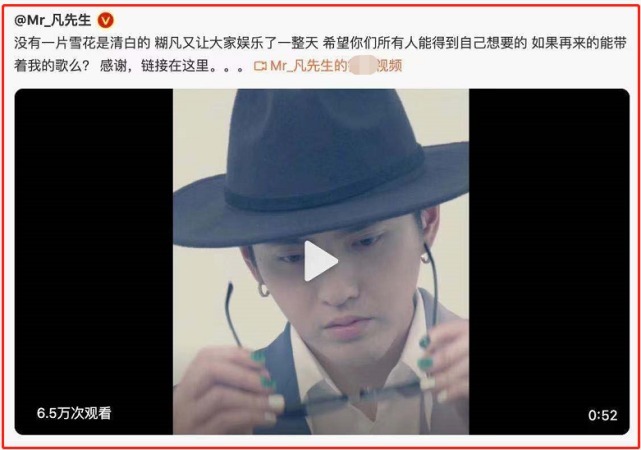 而吴亦凡,趁机装了一把小可爱,还顺带给出了自己新歌的链接,脑回路真是清奇啊。