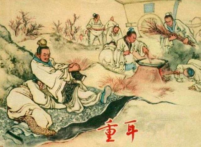 在卫国受尽屈辱,饿的不行了,向路边的老农乞讨。老农给了他一块泥巴。重耳气忿的不行,好在身边人说:泥巴是土地,这是有人给你送土地啊。这才化解了尴尬