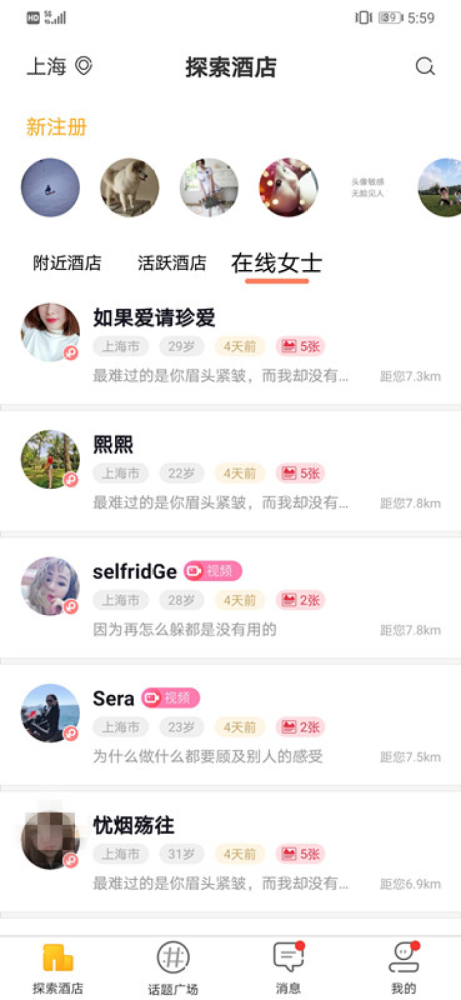 也就是说,用户在该手机软件上通过“附近酒店”等功能刷到的女性用户,绝大多数都是虚拟账号,只要用户发起留言、私聊,系统就会出现充值页面,充值缴费后,才可进行聊天。