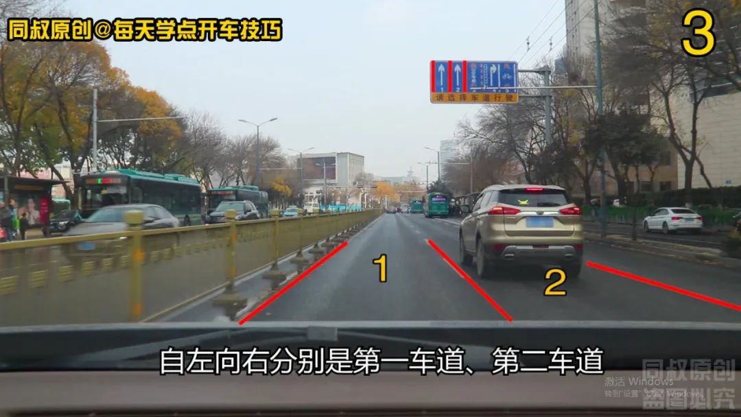 首先我们来了解一下车道是如何排序的,我现在所在的道路是主路三车道,辅路两车道的城市道路。通过上方车道标牌就可以清晰地看到,自左向右分别是第一车道、第二车道,这两个车道都是直行车道,第三车道是公交车专用车道。在绿化带的右侧是辅道,但也是计入总车道的序列当中,分别是第四车道是右转弯车道,第五车道是非机动车道。这就是正常的车道排序方式,无论有没有上方标牌,也无论标牌上面是否注明几号车道,它的排序都是自左向右的顺序排列的。知道了这个顺序排列,我们以后再看视频节目解说时,就能跟得上讲解的思路了。