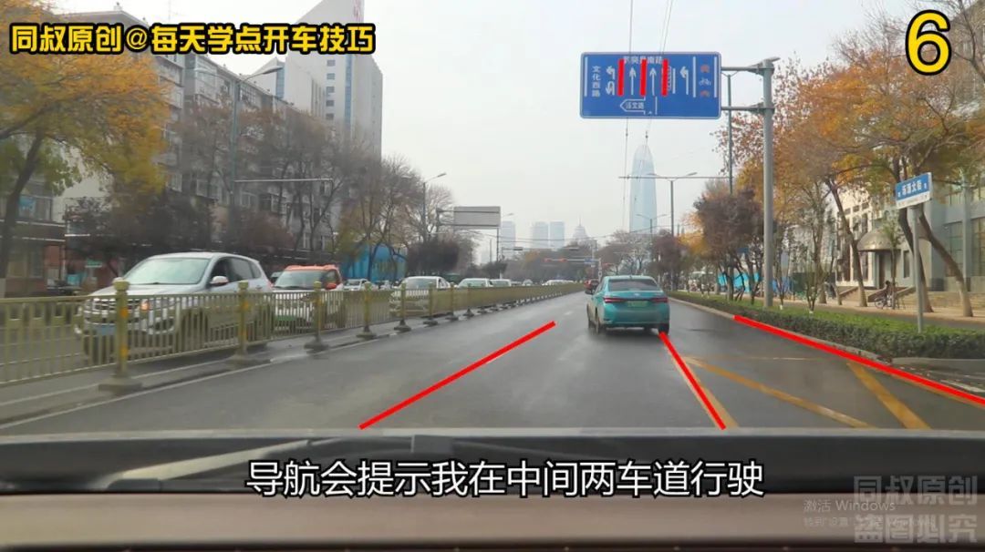 假如继续直行,导航会提示我在中间两车道行驶,不要走最左侧车道。