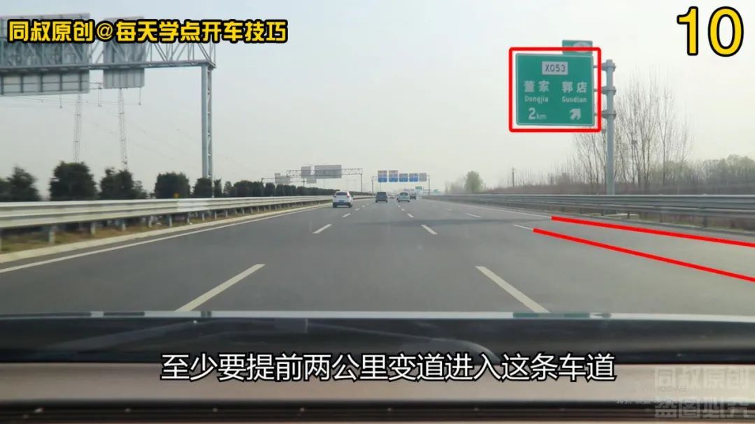 上高速的车辆首先要汇入这条车道进一步提速向左变道,下高速的车辆至少要提前两公里变道进入这条车道,做好驶离高速的准备,所以这条车道也是比较复杂的车道。