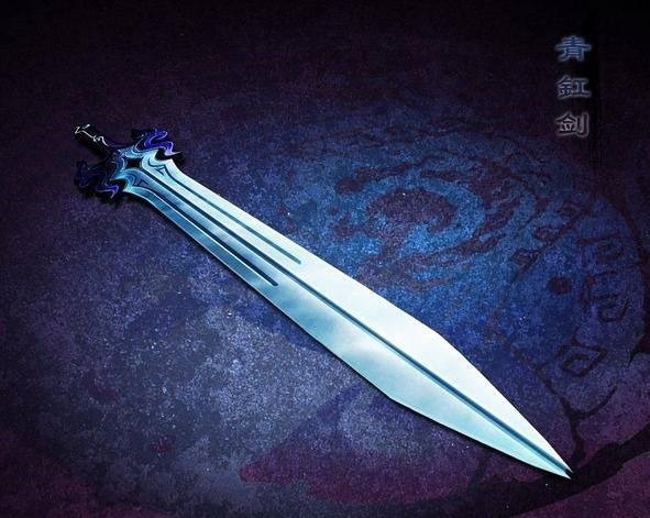 演义中写曹操的青釭宝剑,削铁如泥,靶上有金嵌"青釭"二字。"曹操有宝剑二口:一名'倚天',一名'青釭';并称绝世双剑。倚天剑自佩之,青釭剑令夏侯恩为其背负,结果于长坂坡被赵云夺走。